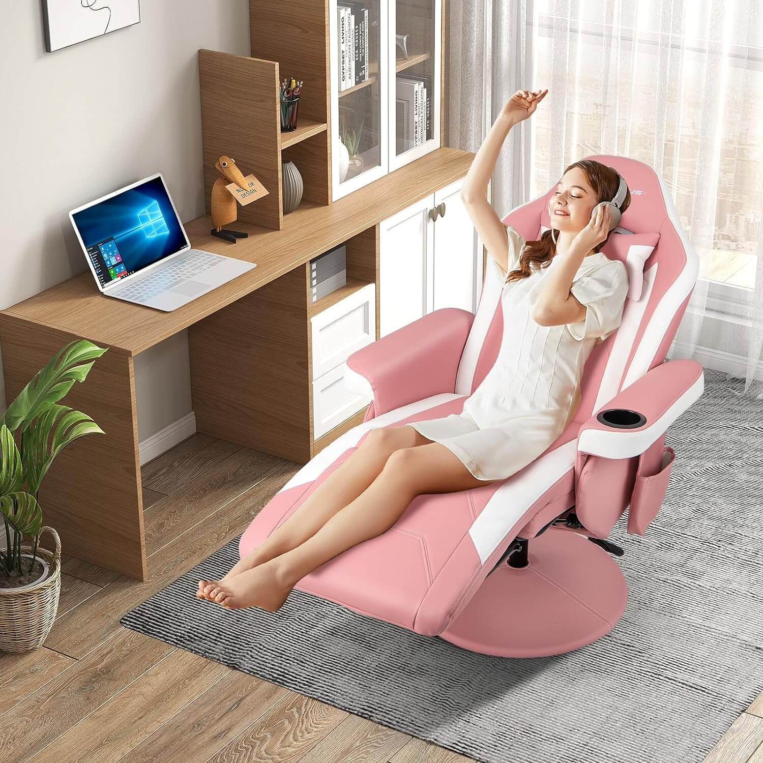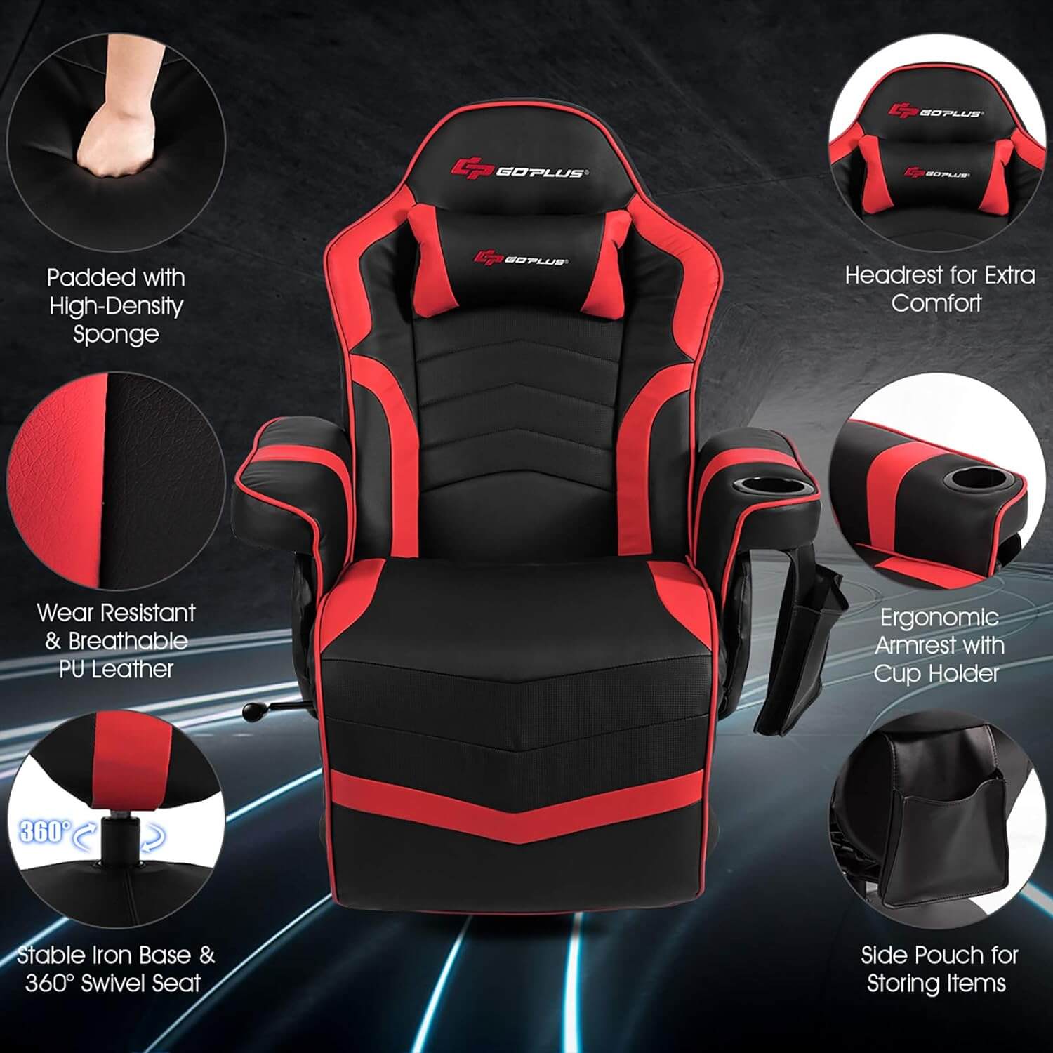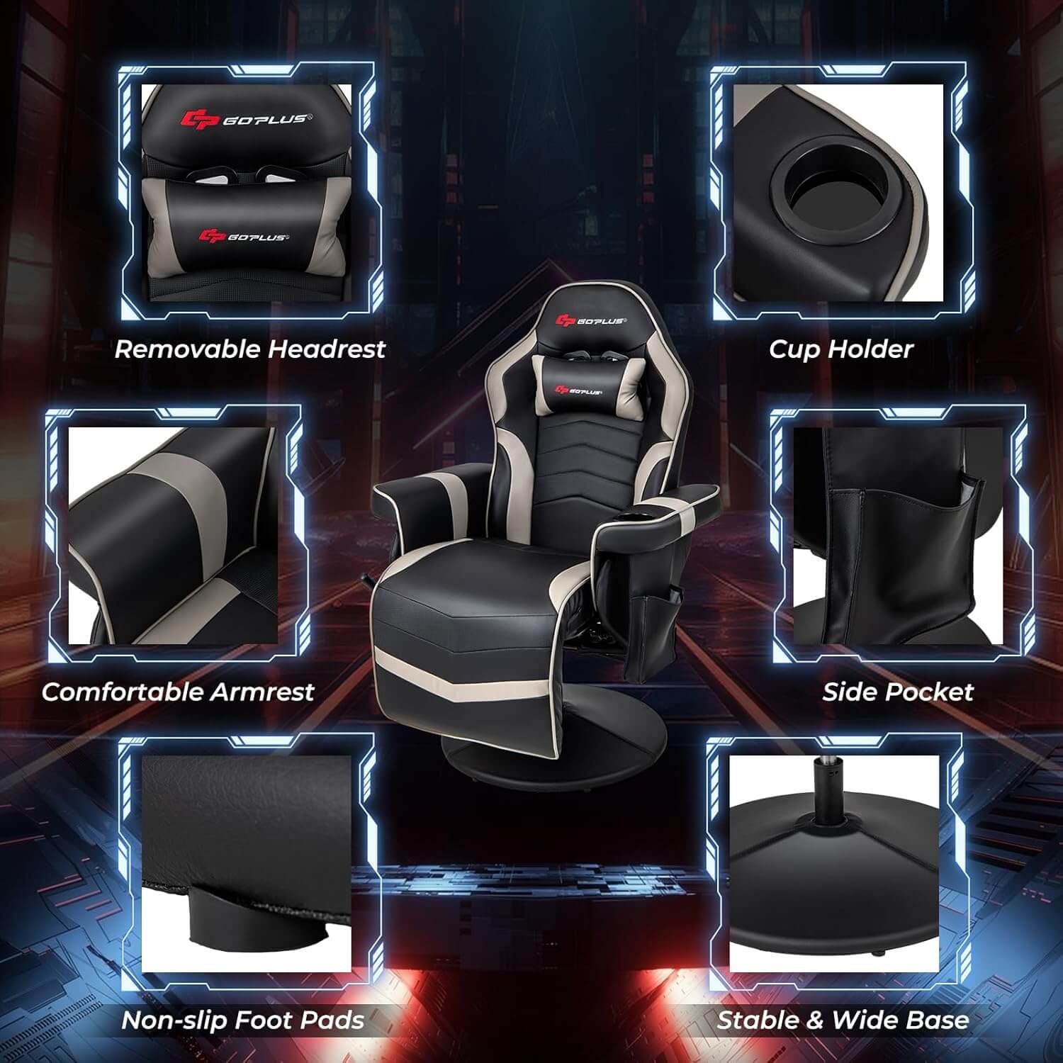 - 【ERGONOMIC CHAIR】- Reclining gaming chair's back can be easily adjust from 100-140 degree for users to find the most suitable angle. 360-degree swivel base provides sturdy support for both the extendable footrest and reclining back